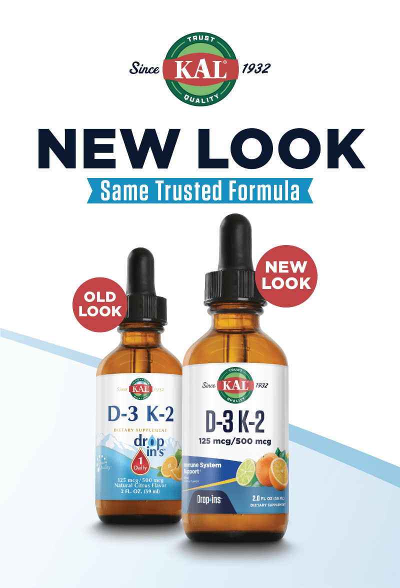 Like all our products, D-3 K-2 DropIns ingredients are lab tested for potency, purity and identity, so you can rely on KAL to deliver the support you’ve been looking for.