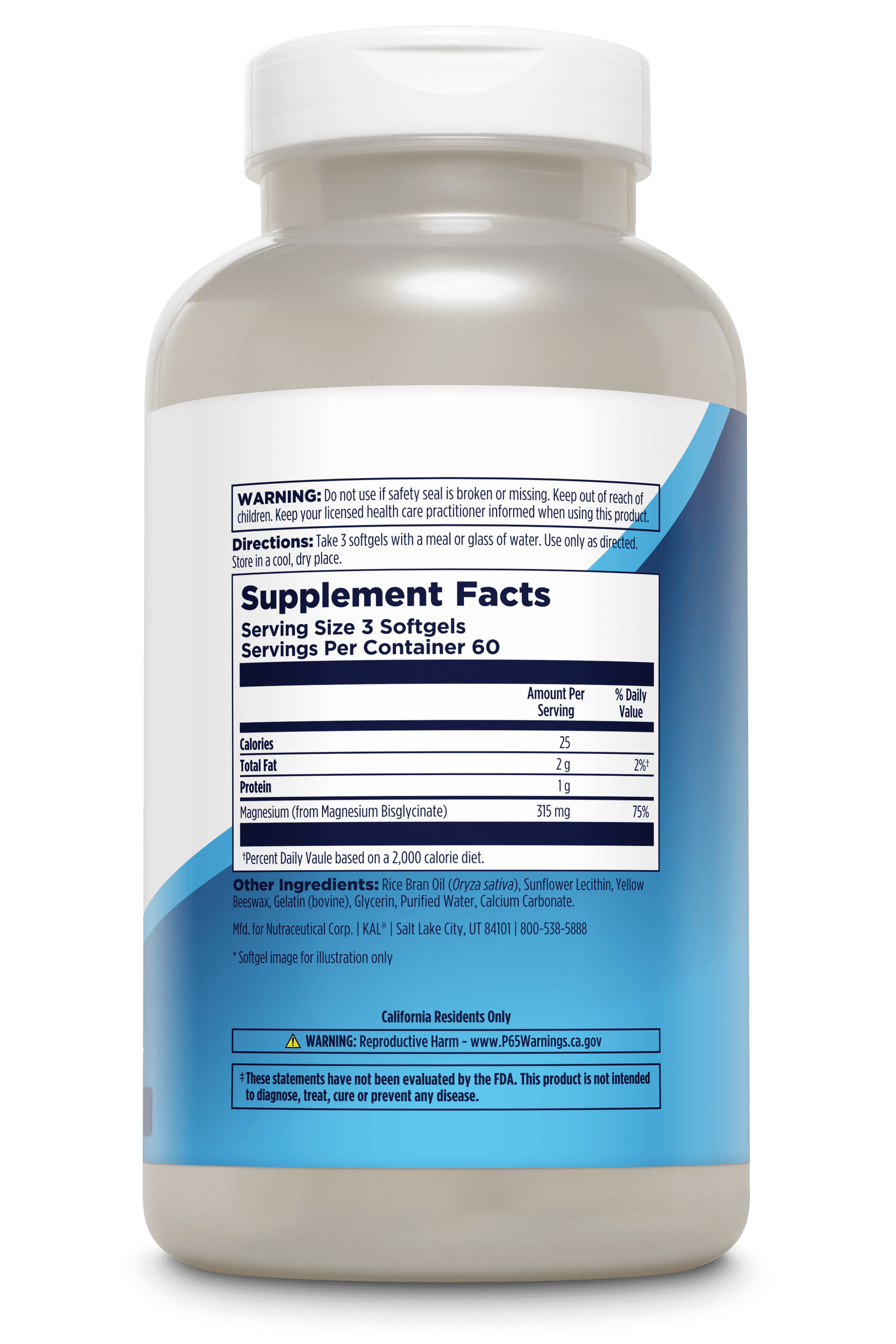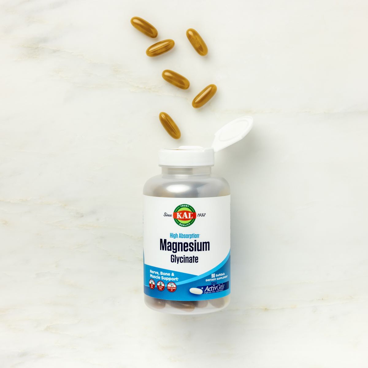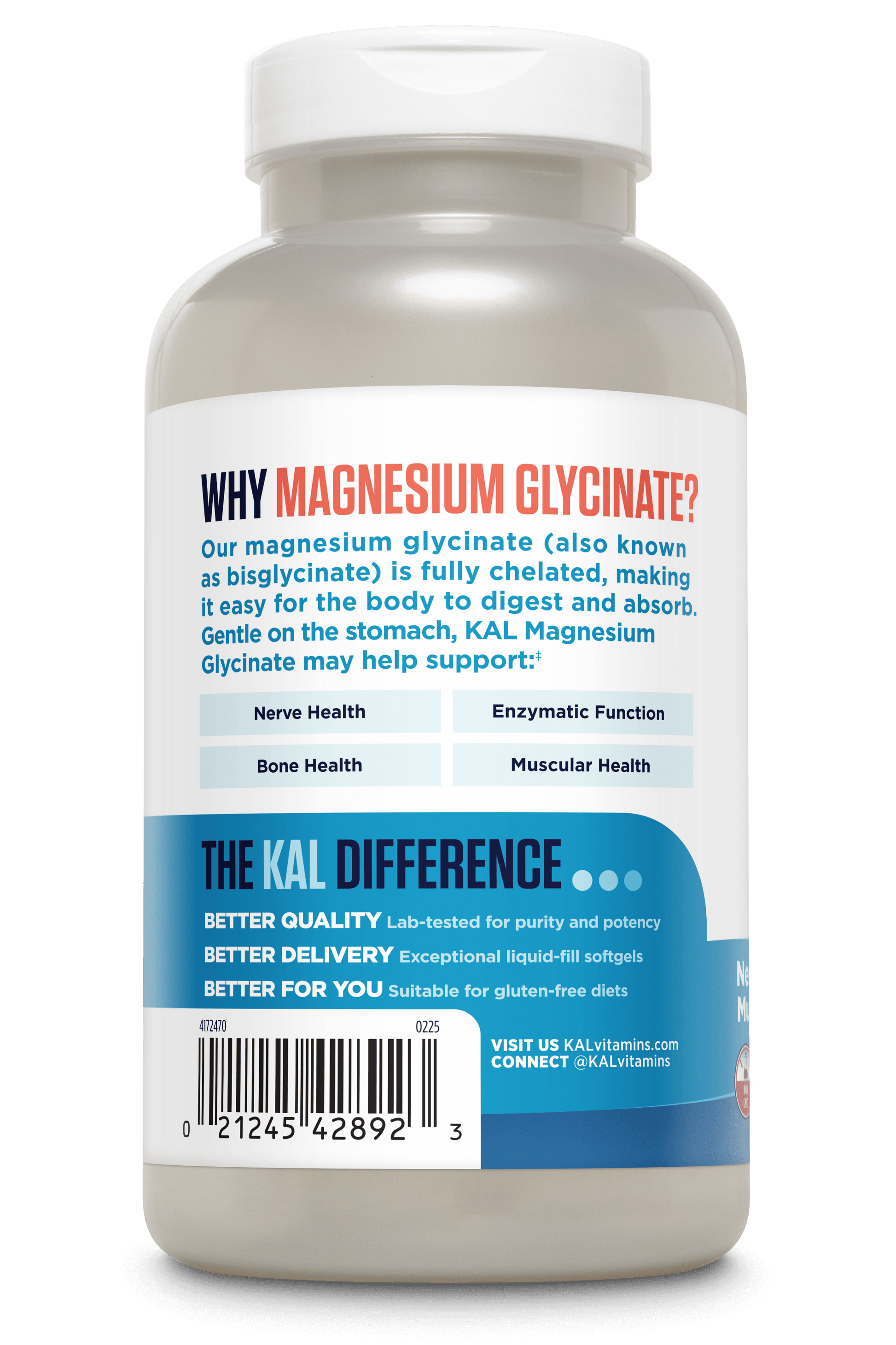 An essential mineral, magnesium is involved in more than 300 enzymatic reactions in the body and plays a role in many vital functions. KAL’s Magnesium Glycinate ActivGels™ is chelated with glycine, making them more bioavailable for efficacious absorption. Magnesium Glycinate works to support healthy nerve function, bone health, and muscles, as well as provide relaxation support.