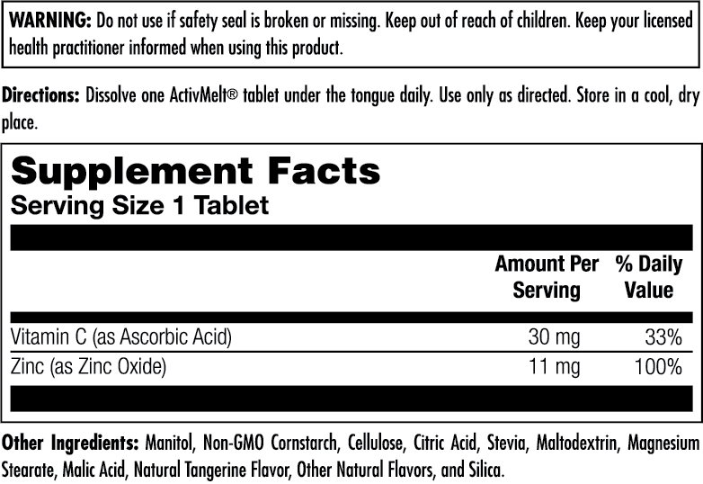 KAL® Zinc + C ActivMelt®: Get the best of both worlds with our two-in-one supplement offering potent antioxidant support. Zinc, an essential mineral, aids various bodily functions and supports a healthy immune system. Vitamin C, a renowned antioxidant and immune booster, combines synergistically with zinc to enhance absorption. Our ActivMelt formula dissolves in seconds, providing a delicious treat that promotes overall health and wellness.*