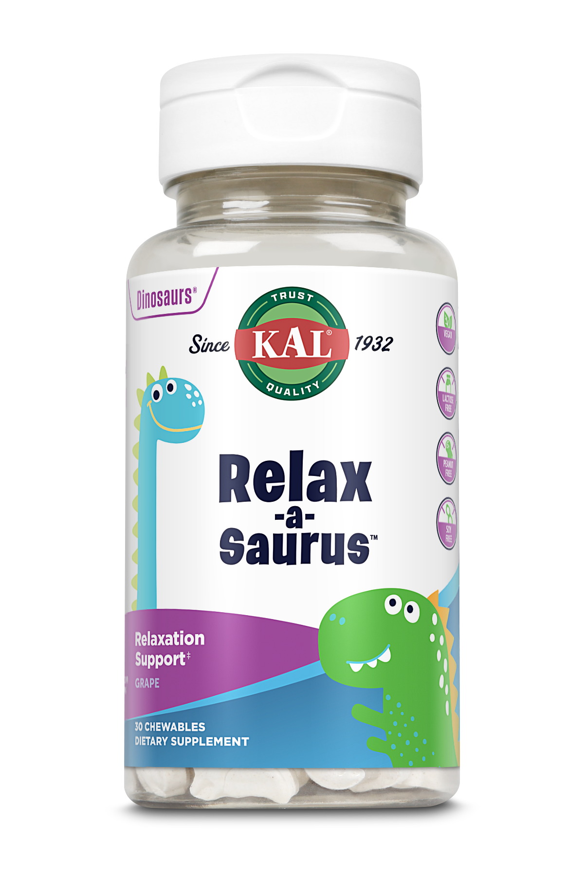Like all our products, Relax-a-Saurus ingredients are lab tested for potency, purity and identity – you can trust KAL to always provide the very best.