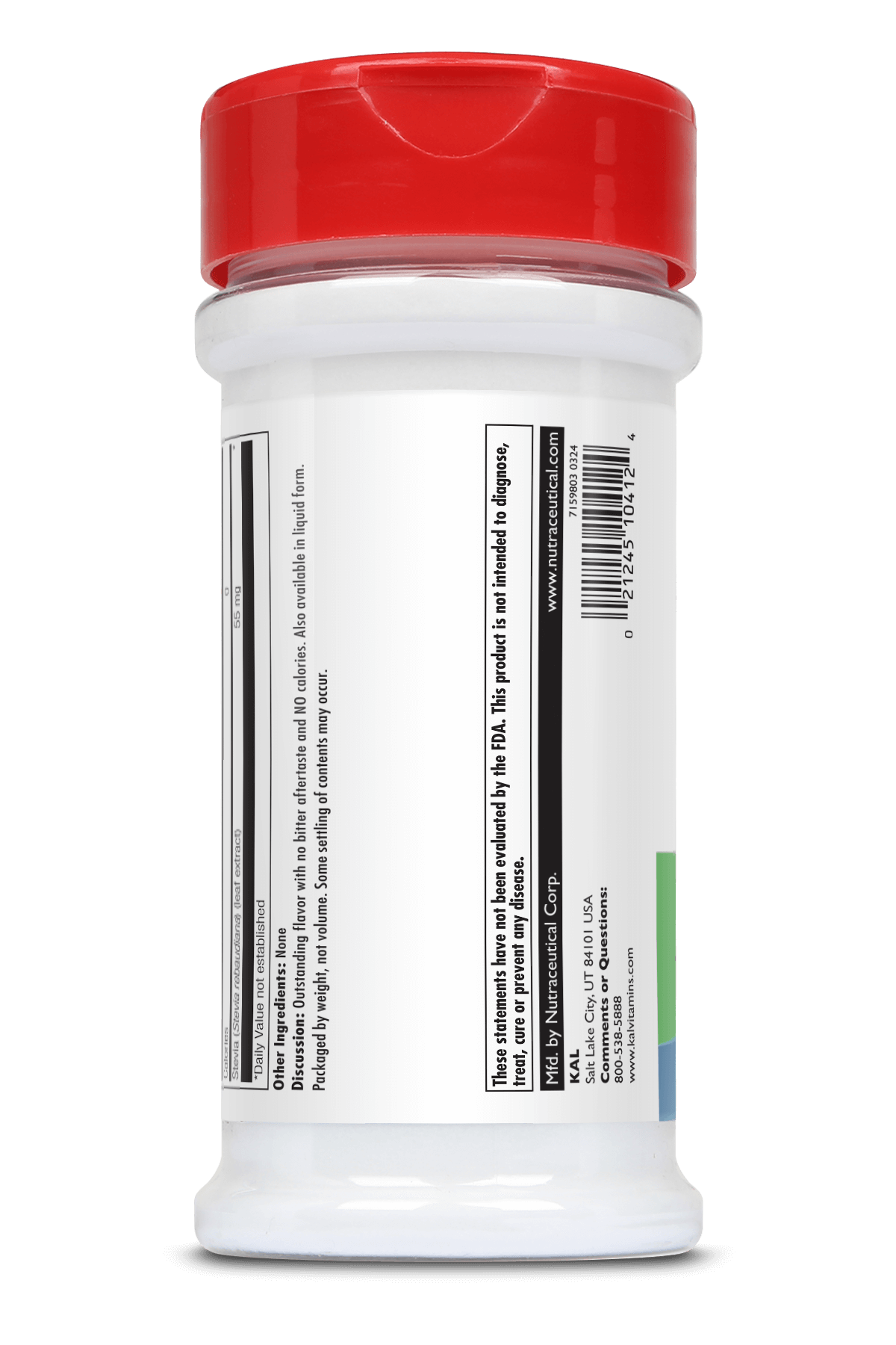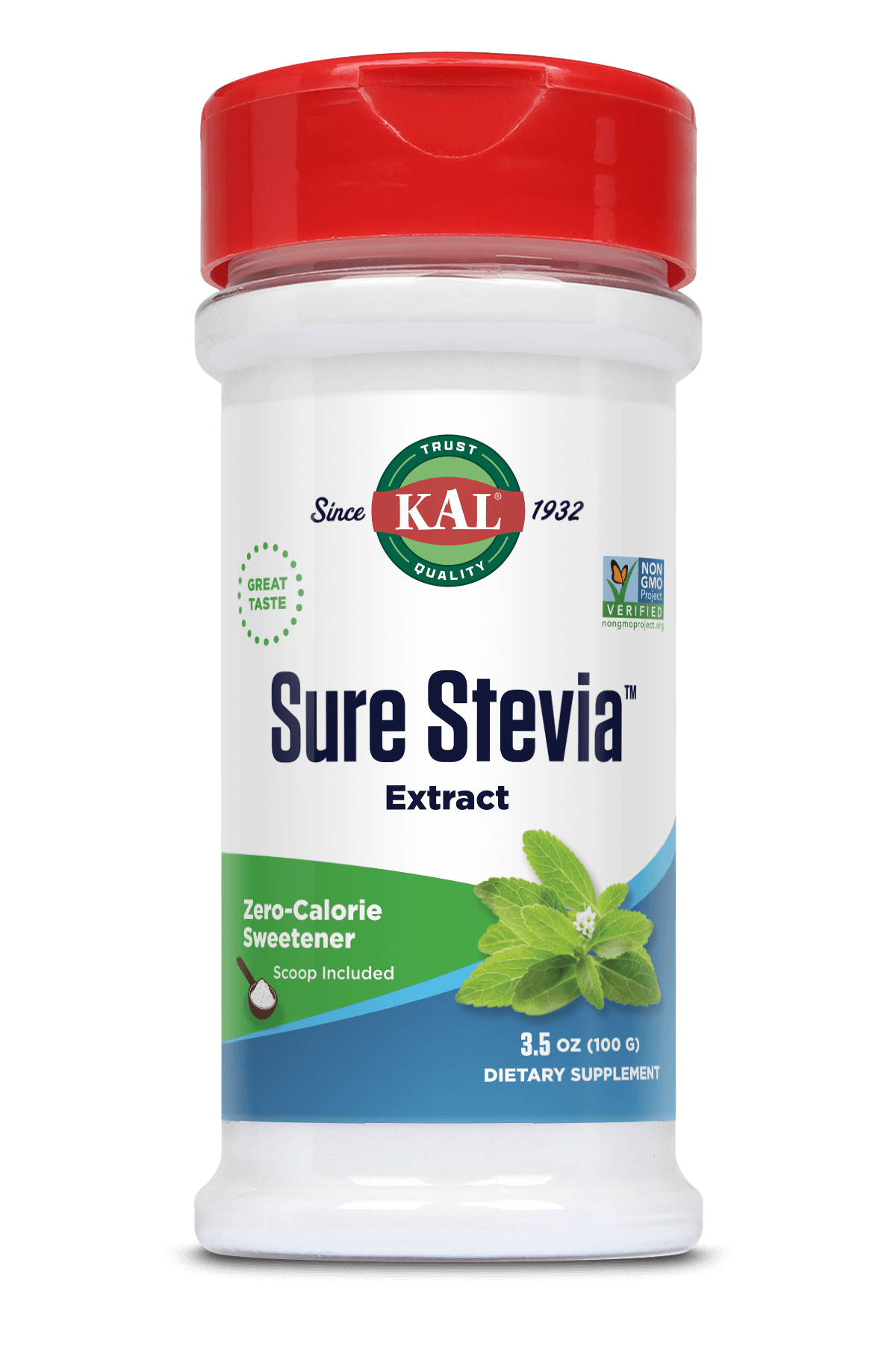 We searched the world over to find the best-tasting, zero-calorie plant-based sweetener. Derived from the leaves of a small shrub in the chrysanthemum family, KAL Sure Stevia Extract contains steviosides, substances unique to stevia plants, known for their intense sweetness.