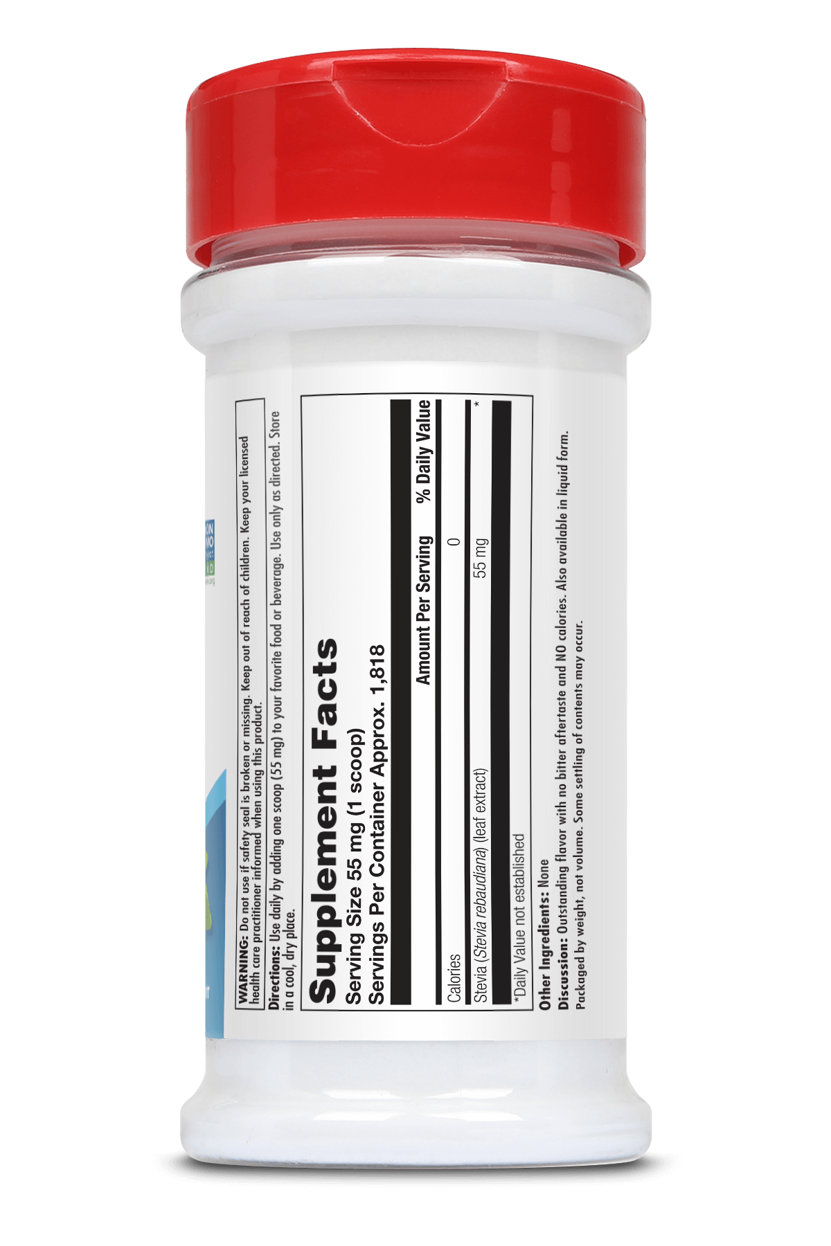 Our low-glycemic stevia extract should not affect blood glucose levels in most individuals, and unlike products that use the whole herb, it has no strong aftertaste, so you get all the sweet goodness without the bitterness of many stevia products. This unflavored powder extract is great for baking and dessert recipes, and it comes in an easy-to-use shaker bottle. You can also try it in your coffee or tea, or add it to cold drinks for an extra boost of sweetness.
