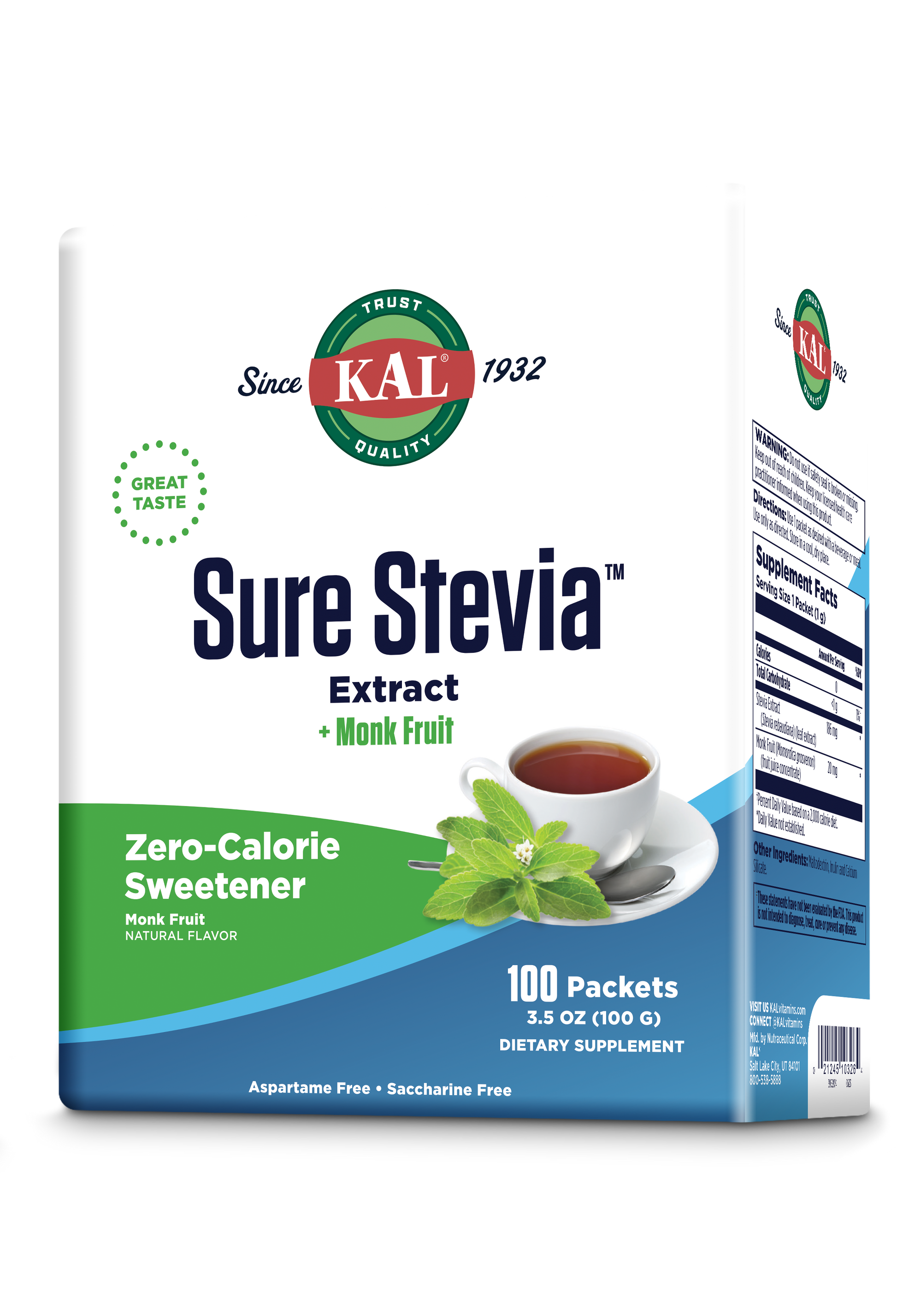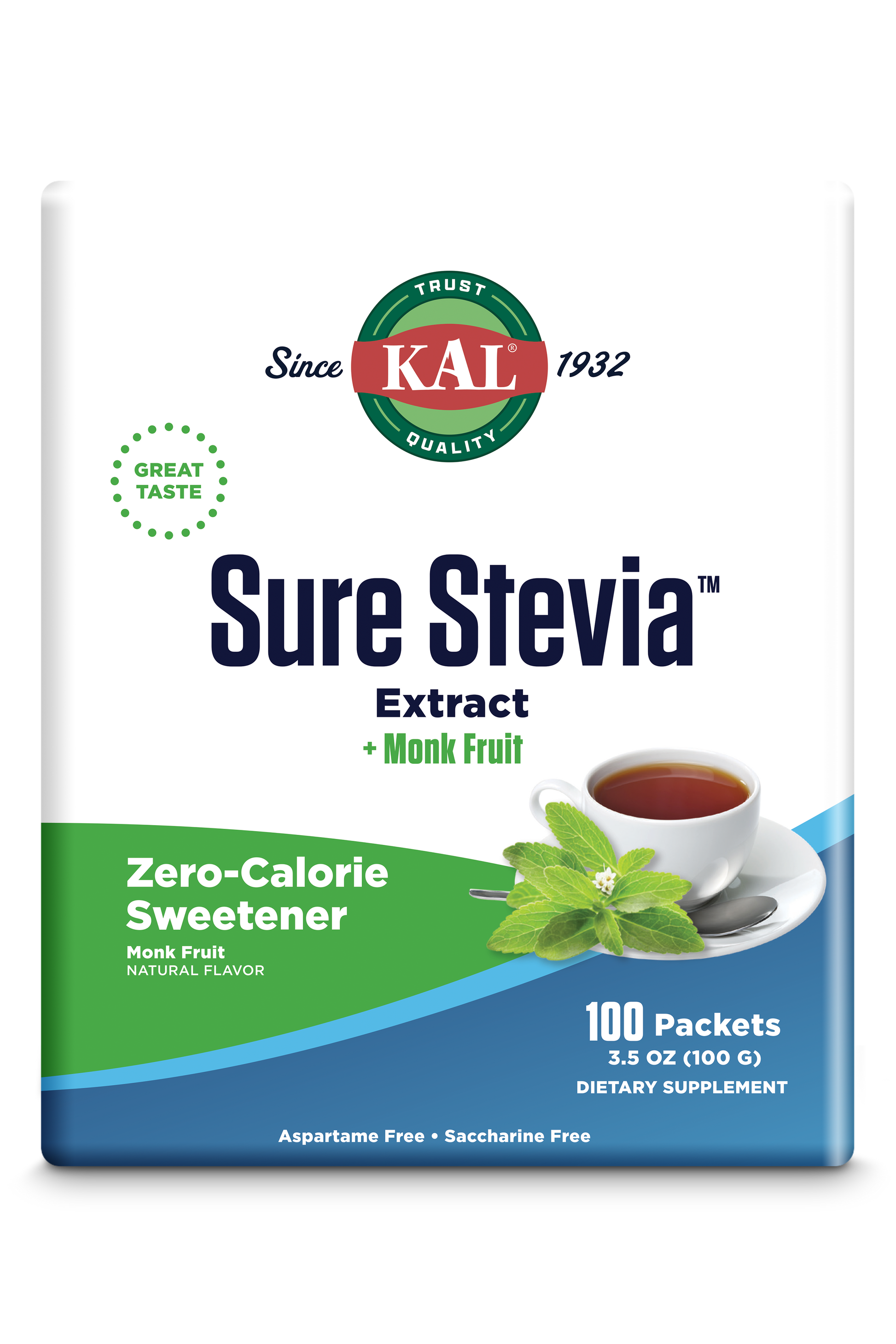 When it comes to sourcing the best-tasting stevia extract with the right level of sweet flavor and minimal-to-zero aftertaste, KAL takes the challenge seriously. After searching the globe for the stevia extract that meets the strictest standards of flavor and goodness, we’re proud to offer our Sure Stevia Extract Powder Plus Monk Fruit.